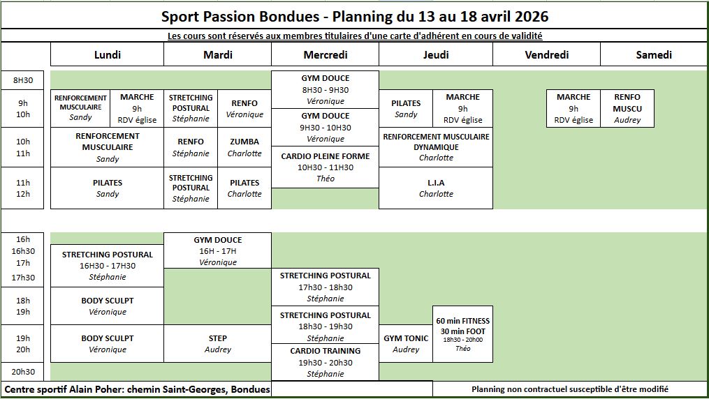 Le renouvellement de votre adhésion à Sport Passion Bondues se fera sur une durée de 3 semaines