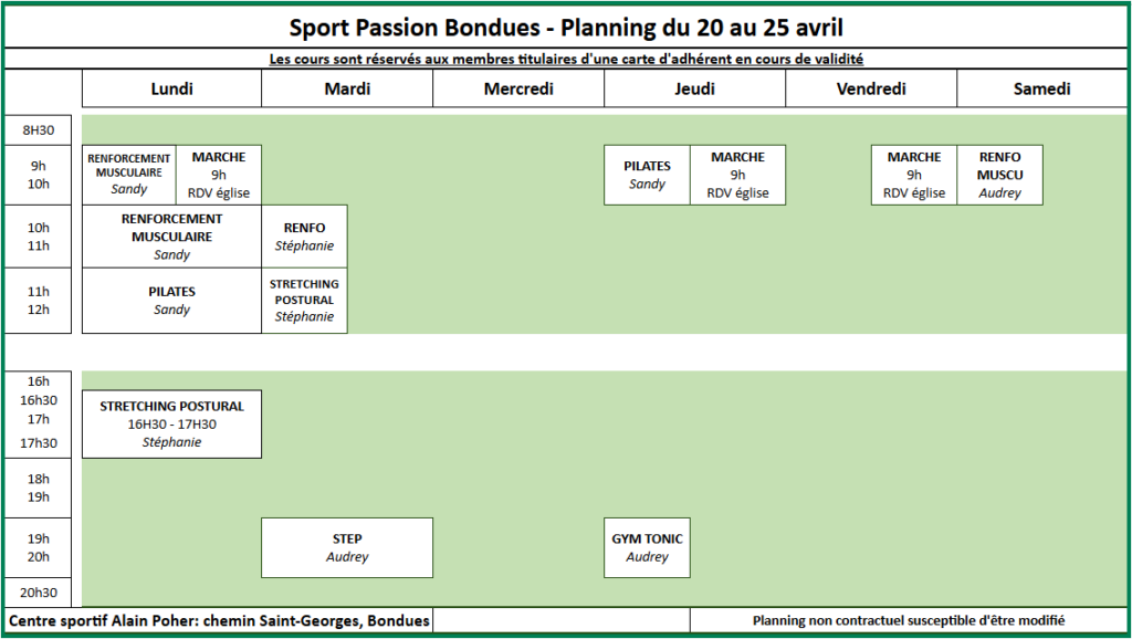 Retrouver notre planning complet dans le menu.